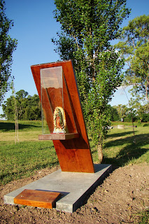 Una imagen de la virgen de Guadalupe se a colocado frente a  la Plaza Bujan en el medio de los futuros Álamos Piramidales , esto le da mas presencia al espacio verde.