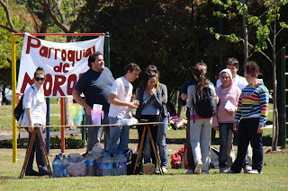 Organizando el apoyo a sus amigos caminantes con agua, comida y asistencia para las piernas cansadas.